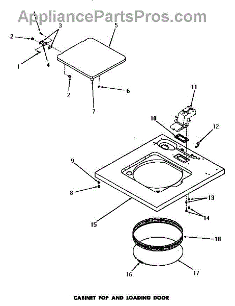 Parts for Amana DA9011: 10 - Cabinet Top & Loading Door Parts