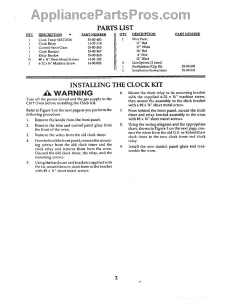 Parts for Thermador CMT-18: 10 - Clock Kit Installation Parts
