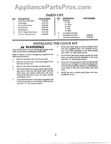 Parts for Thermador CMT-20: 10 - Clock Kit Installation Parts