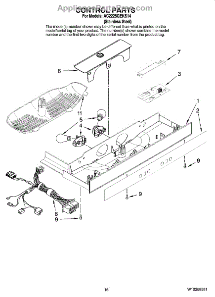 Parts for Maytag AC2225GEKS14: 10 - Control Parts