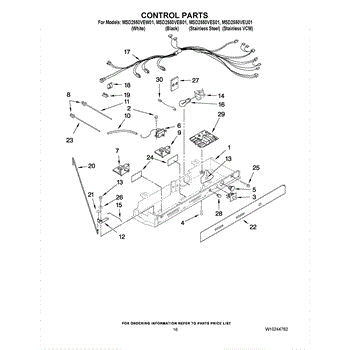 The Defrost Control Board is an OEM replacement part for Whirlpool refrigerators. This circuit board coordinates defrost heating cycles to remove built-up frost from evaporator coils. Causes relate to water damage following leaks, component failure due to power surges loosening connectors, or general component wear over time. Symptoms of issues include: