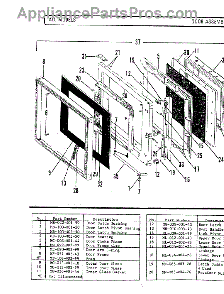 Parts for Hardwick M250: 10 - Door Assembly Parts