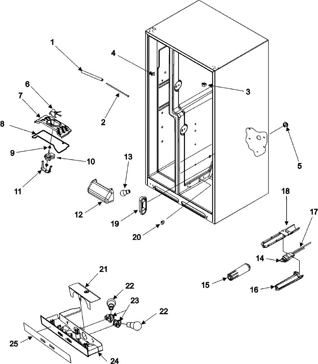 The Water Filter Head and Tube Assembly is an OEM part for Whirlpool refrigerators. It is located inside the refrigerator, near the upper corner, or on the rear wall. It houses the water filter and serves as the connection point between the filter and the water line.