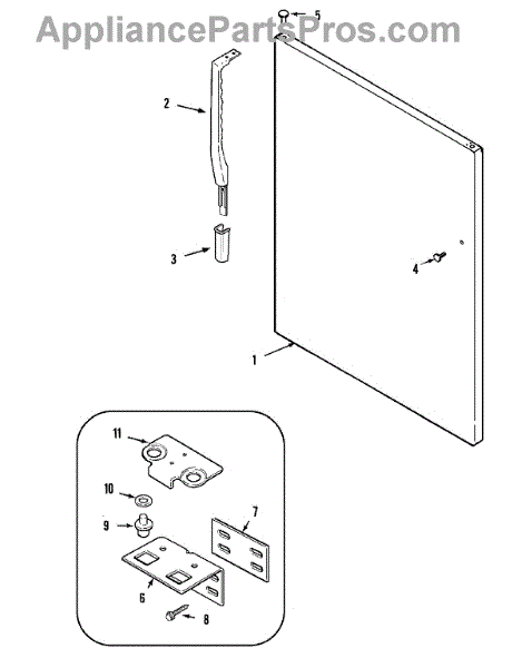 Refrigerator door hinge and pin assembly supports and pivots the door for smooth operation. Replace if cracked, broken, or missing to restore alignment.