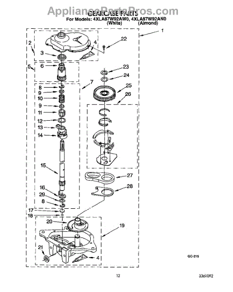 Parts for Whirlpool 4XLA87W92AW0: 10 - Gearcase Parts