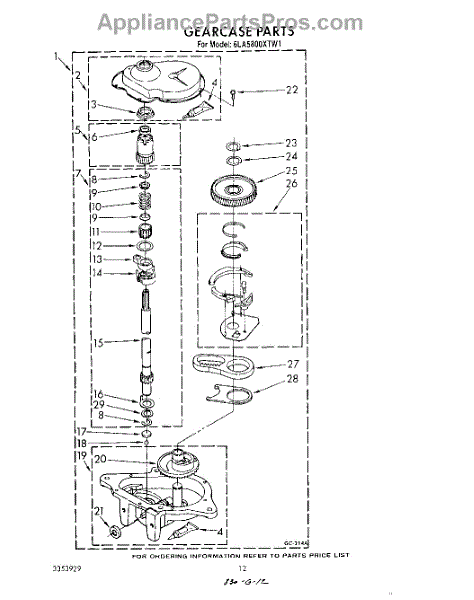 Parts for Whirlpool 6LA5800XTF1: 10 - Gearcase Parts