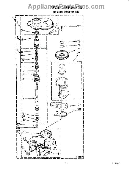 Parts for Kitchenaid KAWE540WWH2: 10 - Gearcase Parts