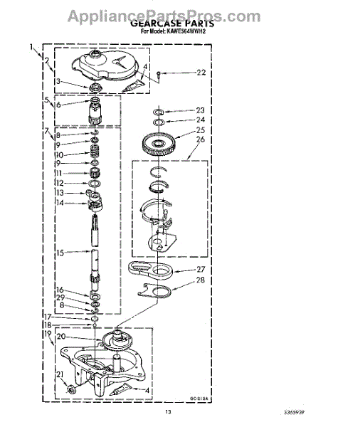 Parts for Kitchenaid KAWE564WAL2: 10 - Gearcase Parts