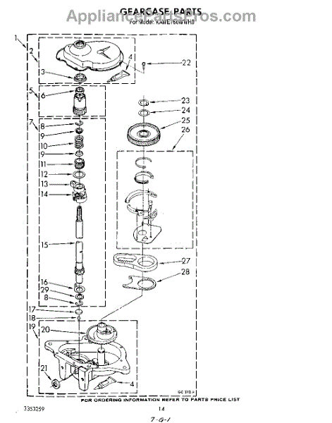 Parts for Kitchenaid KAWE760WWH0: 10 - Gearcase Parts