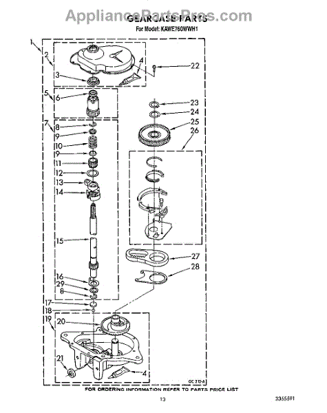Parts for Kitchenaid KAWE760WWH1: 10 - Gearcase Parts