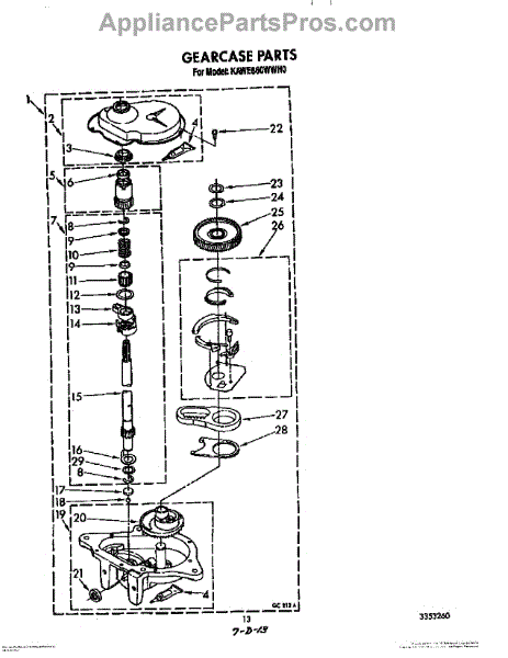 Parts for Kitchenaid KAWE860WWH0: 10 - Gearcase Parts
