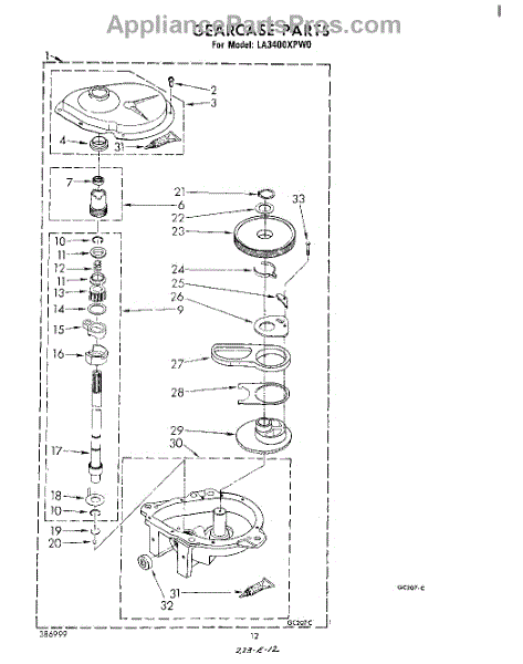 Parts for Whirlpool LA3400XPW0: 10 - Gearcase Parts