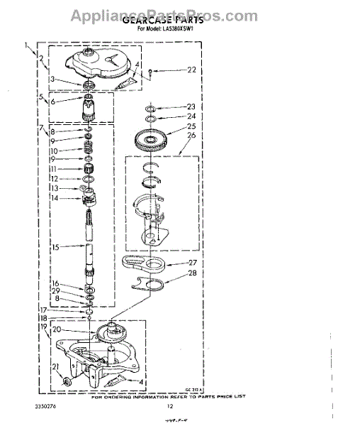 Parts for Whirlpool LA5380XSW1: 10 - Gearcase Parts