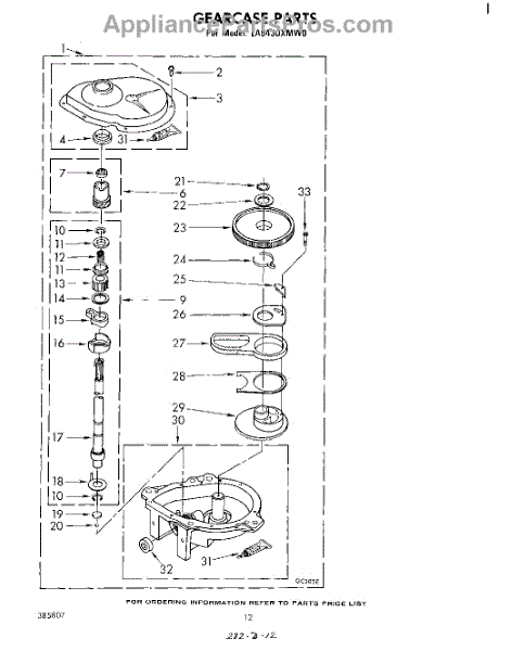 Parts for Whirlpool LA5430XMW0: 10 - Gearcase Parts