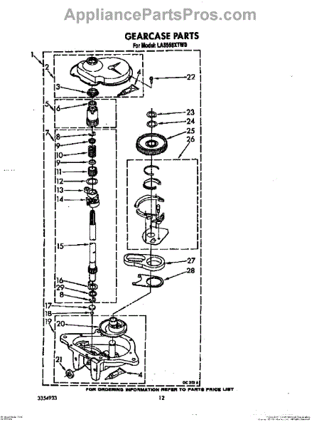 Parts for Whirlpool LA5558XTG0: 10 - Gearcase Parts