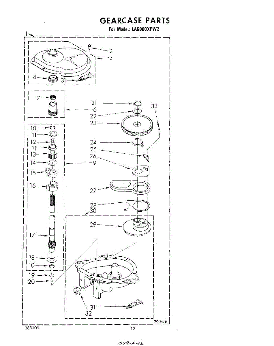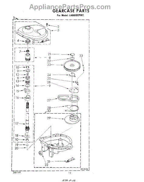 Parts for Whirlpool LA6000XPW2: 10 - Gearcase Parts