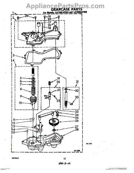 Parts for Whirlpool LA7685XPW0: 10 - Gearcase Parts