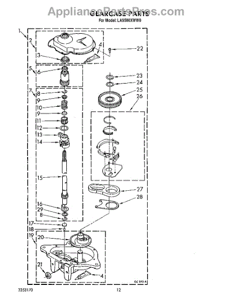 Parts for Whirlpool LA9580XWM0: 10 - Gearcase Parts