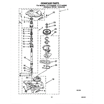 Parts for Whirlpool LLT7144BW0: 10 - Gearcase Parts