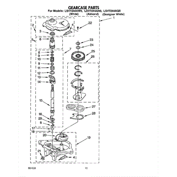 Parts for Whirlpool LSV7244AW0: 10 - Gearcase Parts