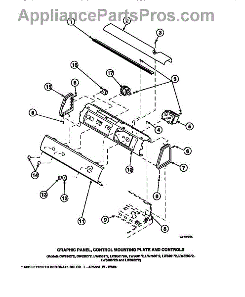 Parts for Amana CW8413W2 / PCW8413W2 A: 10 - Graphic Panel, Ctrl Mtg Plate And Ctrls Parts
