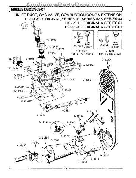 Parts for Maytag LDG22CS: 10 - Inlet Duct, Gas Valve & Combustion Cone Parts