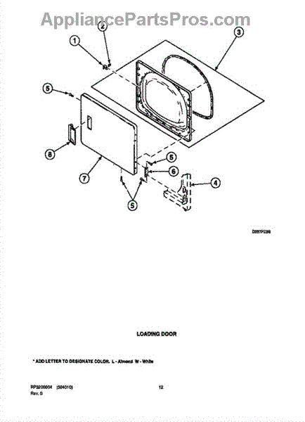 Parts for Amana LES19AW / PLES19AW: 04 - Loading Door Parts