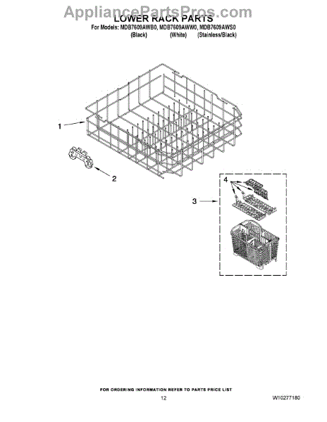 Parts for Maytag MDB7609AWB0: 10 - Lower Rack Parts