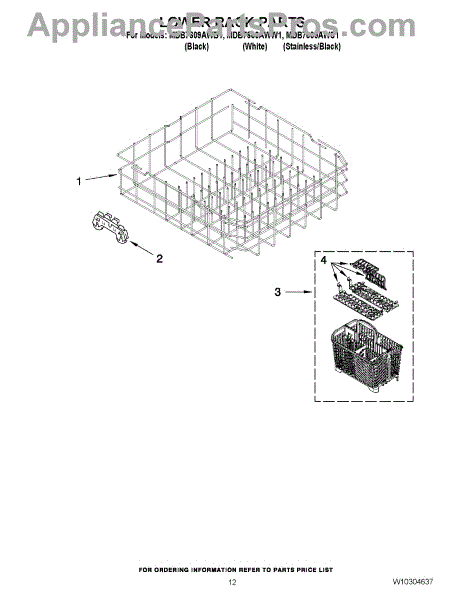 Parts for Maytag MDB7609AWW1: 10 - Lower Rack Parts