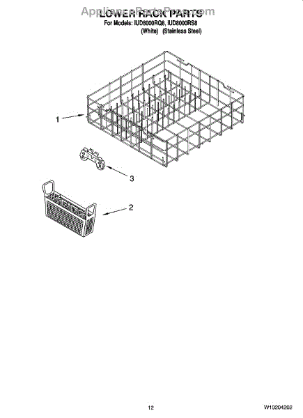 Parts for Whirlpool IUD8000RQ8: 10 - Lower Rack Parts