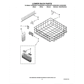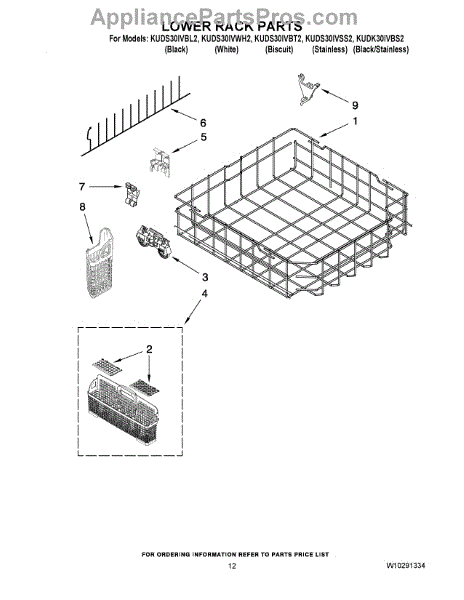 Parts for Kitchenaid KUDK30IVBS2: 10 - Lower Rack Parts