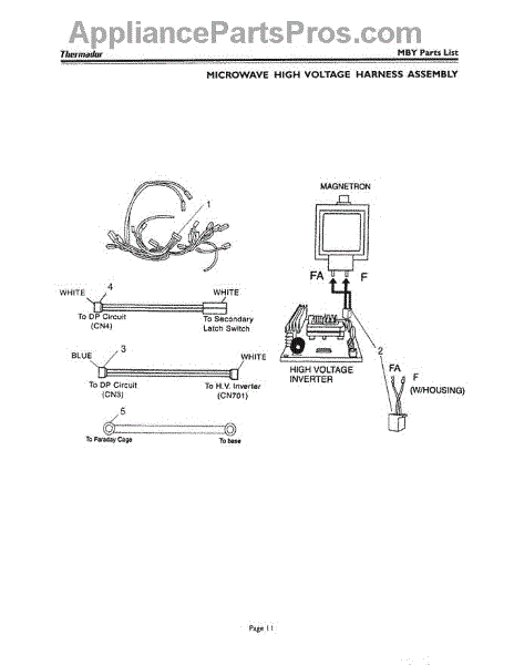 Parts for Thermador MT27B: 10 - Microwave High Voltage Harness Assembly Parts