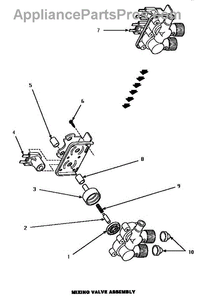 This mixing valve blends hot and cold supply water to reach the selected temperature during fill. Replacing a worn valve restores correct water temperature and flow so cycles run as intended. What it does: