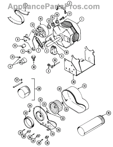 This is the main drive motor that powers the appliance's drive system. A failing motor can cause the unit to stop agitating or spinning, run intermittently, hum without movement, or trip the overload.