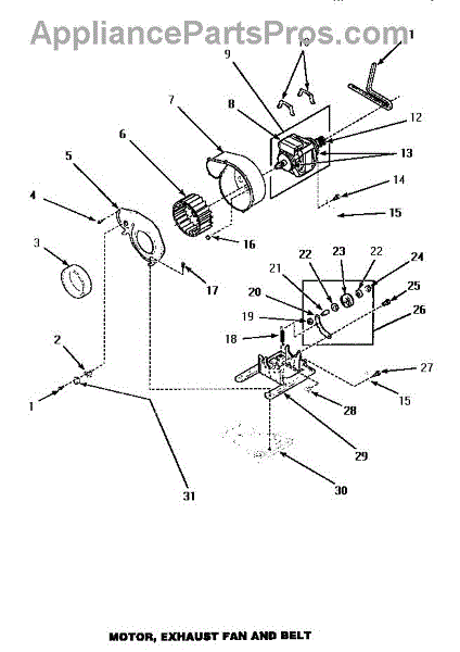 Parts for Amana AEM407L2: 10 - Motor, Exhaust Fan & Belt Parts