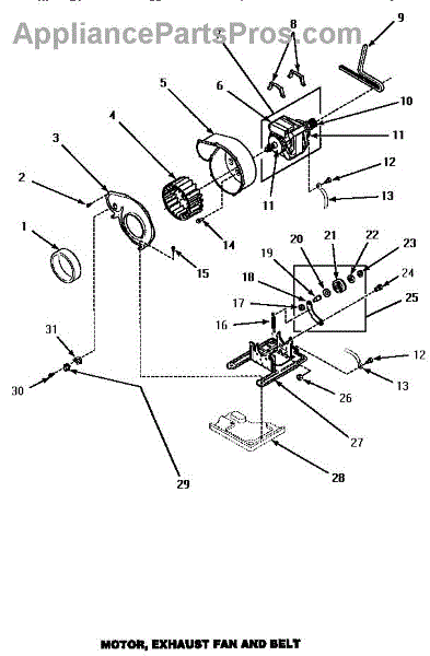 Parts for Amana AEM497W: 10 - Motor, Exhaust Fan & Belt Parts