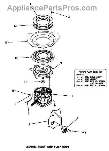 Parts for Amana DC5600: 10 - Motor, Relay & Pump Body Parts