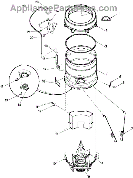 This replacement main bearing assembly supports the washer's drive/spin system. It keeps the inner basket and drive shaft rotating smoothly and quietly, helping maintain alignment and reducing vibration during wash and high-speed spin.