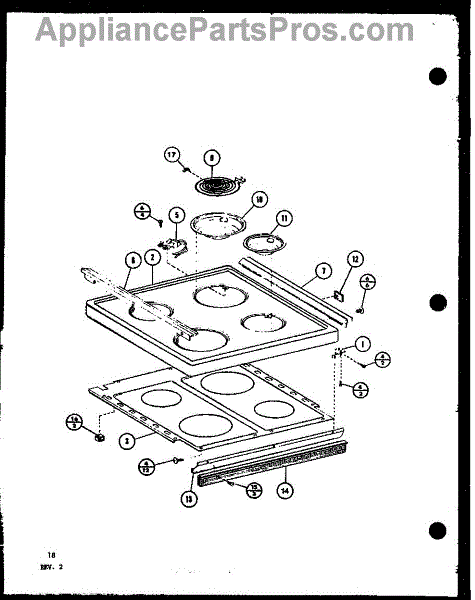 Shallow metal drip pan installs below burner elements to catch grease and spills. Replace when discolored, rusted, warped, or damaged for a clean cooktop.