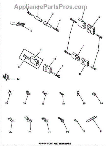 Parts for Amana HE2250: 10 - Power Cord & Terminals Parts