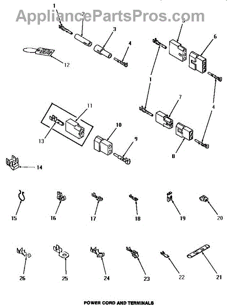 Parts for Amana HE4003: 10 - Power Cord & Terminals Parts