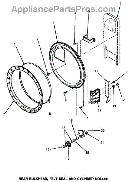 Parts for Amana NE5513: 10 - Rear Blkhd, Felt Seal & Cylinder Roller Parts