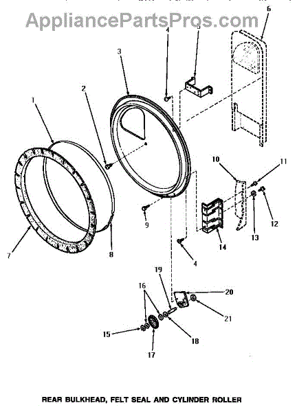 Parts for Amana NE7513: 10 - Rear Blkhd, Felt Seal & Cylinder Roller Parts