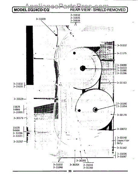 Parts for Maytag LDG34CQ: 10 - Rear View-Shield Removed Parts