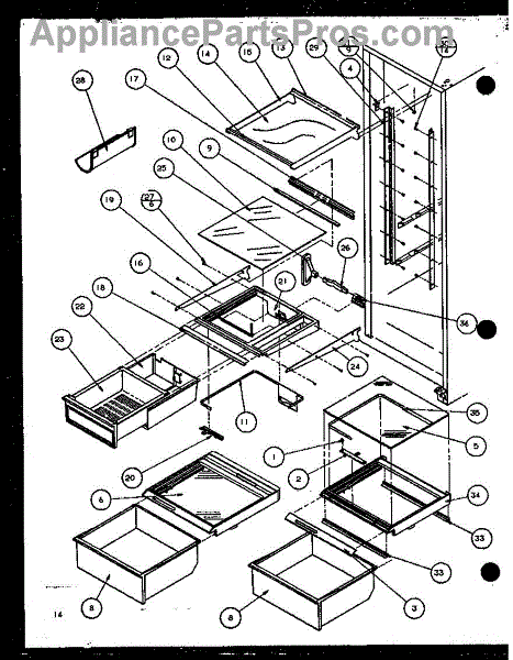 Parts for Amana 36558 / P1108803W: 10 - Ref Shelving And Drawers Parts