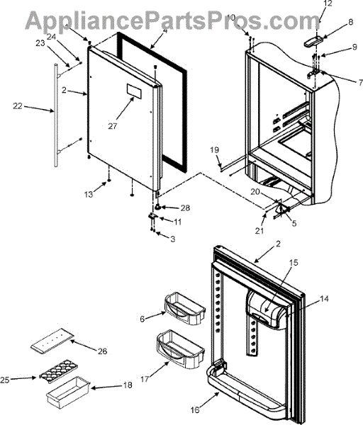 The Door Closure is an OEM replacement part for Whirlpool refrigerators. It is a small component that the door rides on that allows it to open and close properly. Causes of impaired operation involve age-related spring coil fatigue, dislodged or cracked plastic housing pieces, or confined door alignment stripping closure grooves. Symptoms of a faulty closure include: