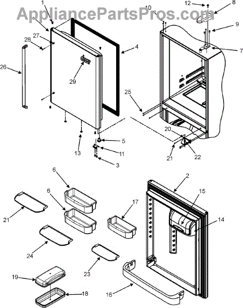 The Door Closure is an OEM replacement part for Whirlpool refrigerators. It is a small component that the door rides on that allows it to open and close properly. Causes of impaired operation involve age-related spring coil fatigue, dislodged or cracked plastic housing pieces, or confined door alignment stripping closure grooves. Symptoms of a faulty closure include: