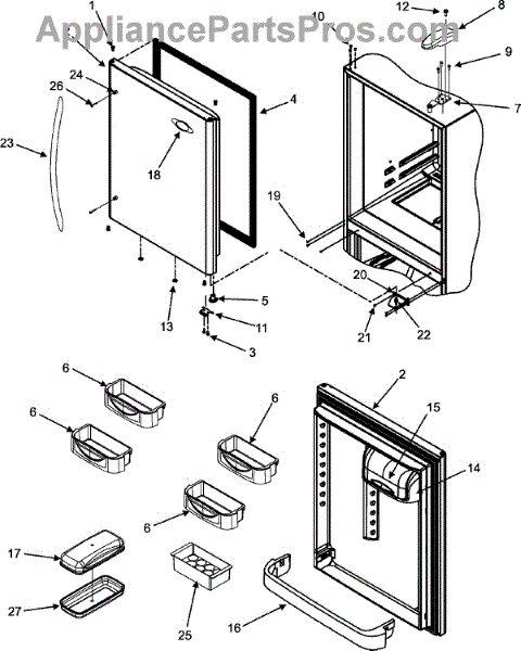 The Door Closure is an OEM replacement part for Whirlpool refrigerators. It is a small component that the door rides on that allows it to open and close properly. Causes of impaired operation involve age-related spring coil fatigue, dislodged or cracked plastic housing pieces, or confined door alignment stripping closure grooves. Symptoms of a faulty closure include: