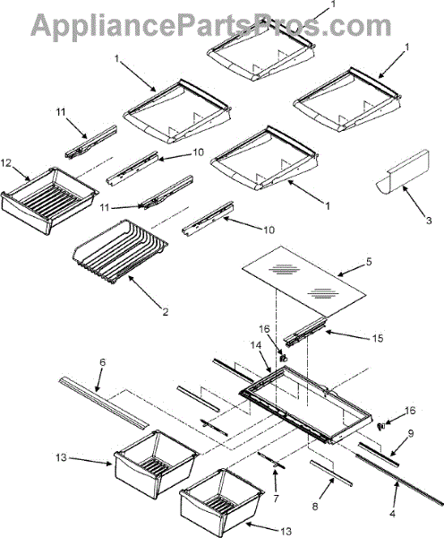 Parts for Maytag PBF2555HEW: 10 - Refrigerator Shelves Parts