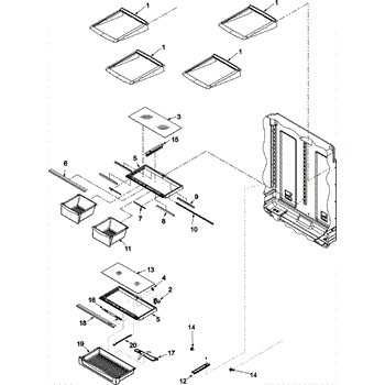 A replacement pantry divider that helps separate and stabilize items on the refrigerator pantry shelf for neater storage and fewer tipped containers. Restores proper spacing and organization inside the pantry area. What it does: